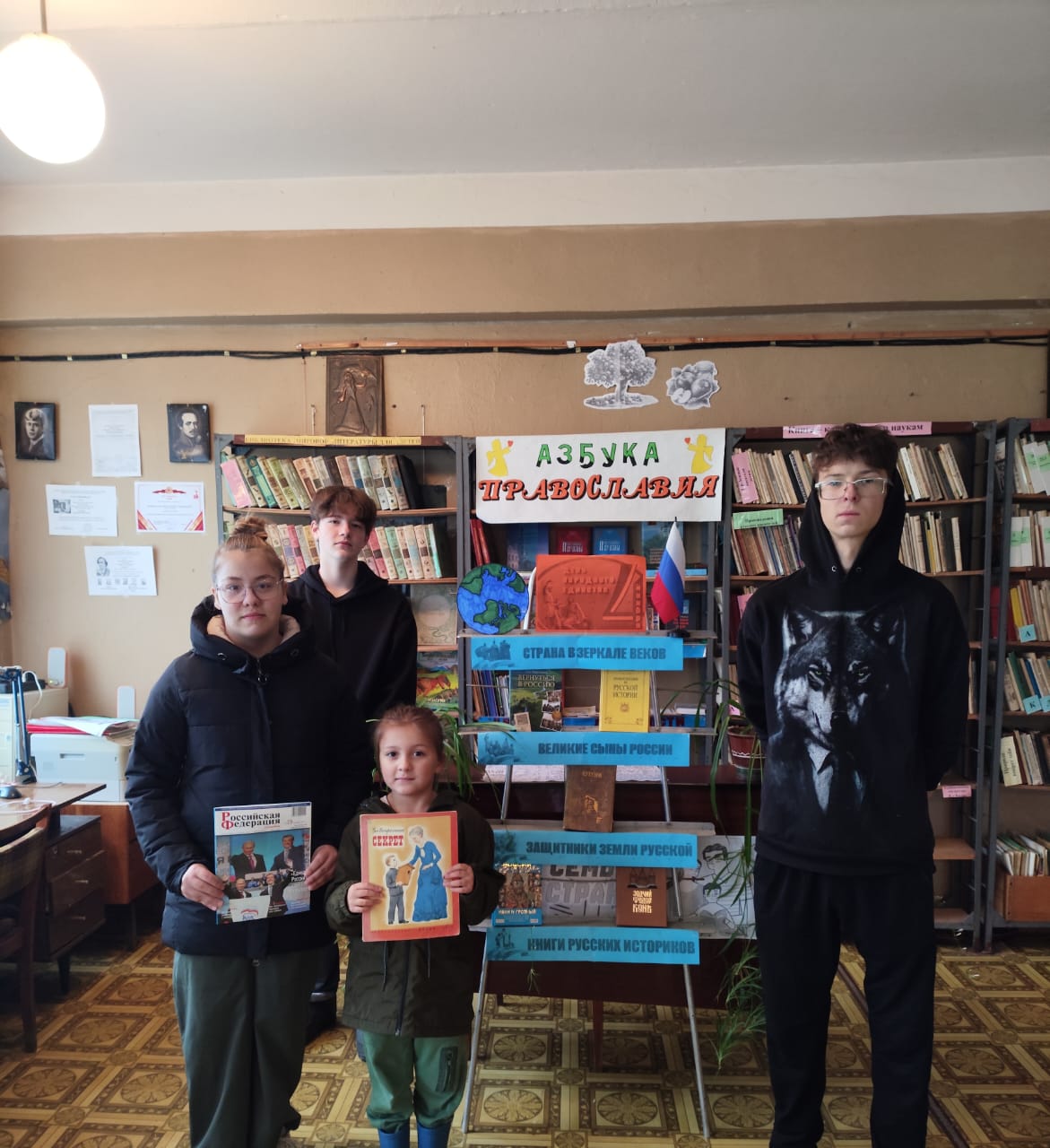 В Заозерской сельской библиотеке состоялся патриотический час под названием "Листая страницы истории", приуроченный к важной дате в календаре — Дню народного единства. Библиотекарь подготовил викторину, где ребята смогли проверить свои знания о значимых событиях и личностях, которые внесли свой вклад в формирование российской государственности.