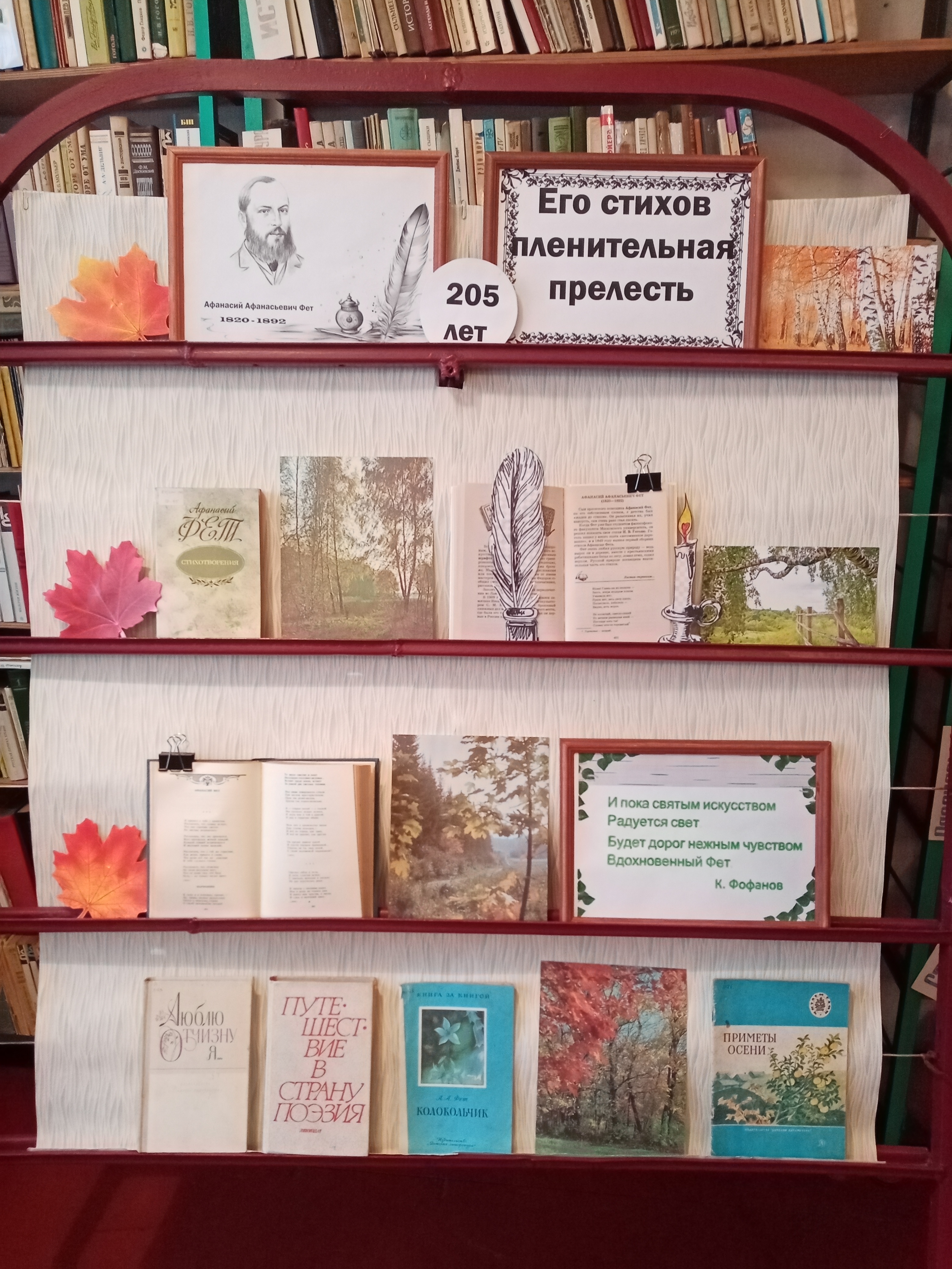 5 декабря исполняется 205 лет со дня рождения Афанасия Афанасьевича Фета, выдающегося русского поэта-лирика, переводчика и мемуариста. В Погорельской сельской библиотеке прошёл литературный час «Целый мир от красоты…», посвящённый юбилею писателя. Библиотекарь рассказал о жизни, творчестве Афанасия Фета. Были прочитаны его известныепроизведения, как «Я пришёл к тебе с приветом…», «На заре ты её небуди…», «Мама, глянь-ка из окошка…», «Печальная берёза у моего окна…» и некоторые другие. Природа и любовь были главными темами произведений