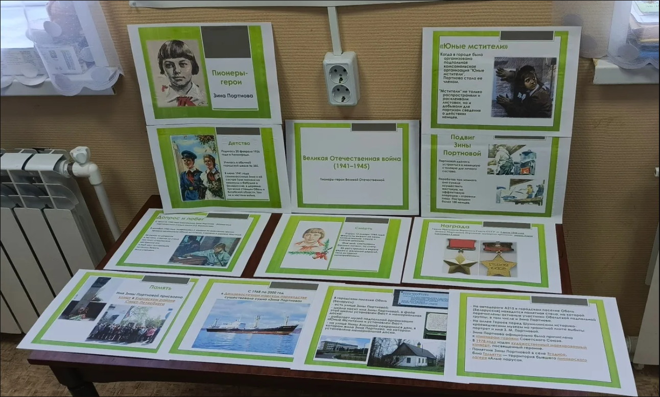 18 января в Ситьковской сельской библиотеке открылась выставка "Великая Отечественная война. Пионеры герои", посвященная 100-летию со дня рождения партизанки и участницы антифашистской молодежной организации "Юные Мстители" Зины Портновой (1926-1944).