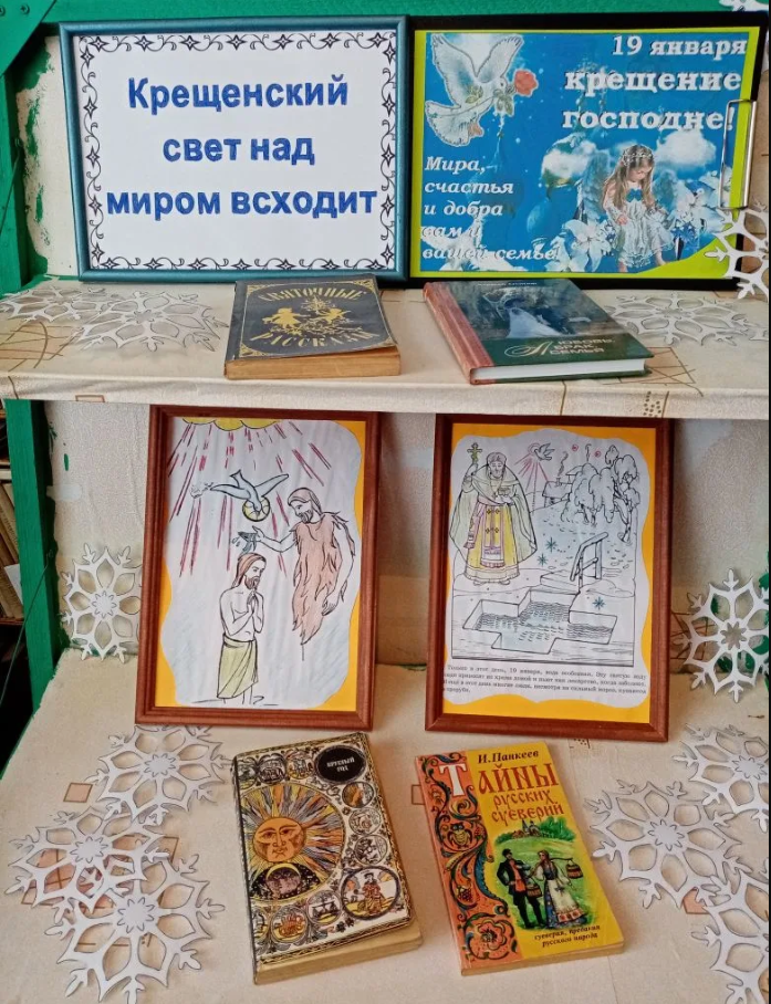 19 января православный мир отмечает Крещение Господне — один из самых значимых праздников христианства. Этот день символизирует духовное обновление, очищение и начало общественного служения Христа. В связи с этим важным событием в Погорельской сельской библиотеке оформлена книжная выставка под названием "Крещенский свет над миром всходит". На данной выставке представлены разнообразные книги, рассказывающие об истории происхождения праздника Крещения, о его значении для православной веры. Вы также сможете узнать о традициях, связанных с праздником — водосвятием и купанием в проруби, а также о том, как праздничные дни "Святки" отмечались в старину. Приглашаем всех желающих посетить нашу выставку, чтобы глубже понять смысл данного праздника и познакомиться с богатым наследием православной культуры. Давайте вместе отметим этот светлый день и ощутим его духовную силу!