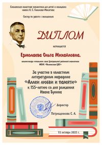 В Секторе по работе с молодежью Смоленской областной библиотеки для детей и молодежи им. И. С. Соколова-Микитова подведены итоги областного литературного марафона «Аллеи любви и памяти», посвященного 155-летию со дня рождения И. А. Бунина.