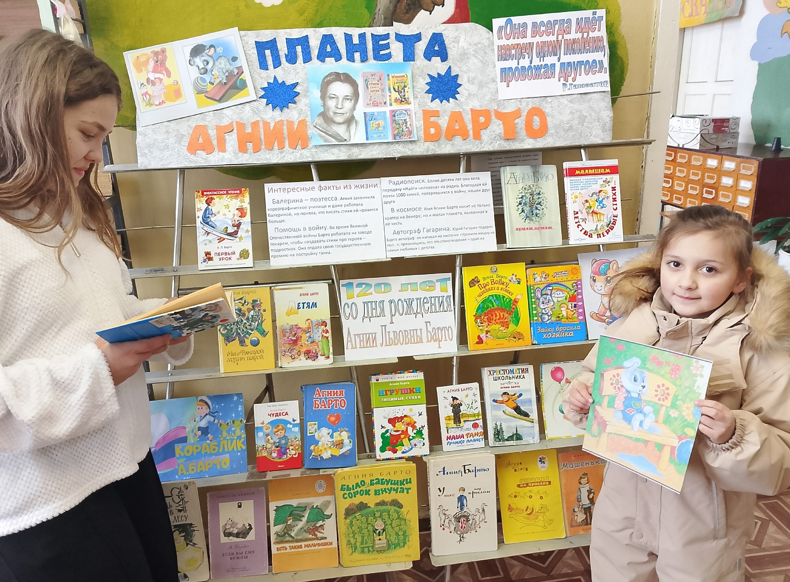 17 февраля 2026 года исполняется 120 лет со дня рождения известной и любимой детской поэтессы, киносценариста и радиоведущей Агнии Львовны Барто, чьё творчество стало неотъемлемой частью детства многих поколений россиян. В детской библиотеке оформлена книжная выставка «Планета Агнии Барто», посвящённая 120-летию со дня рождения Агнии Львовны Барто. На выставке представлены материалы о жизни и творчестве поэтессы и, конечно, яркие, красочные книжки с замечательными стихами Агнии Львовны Барто.