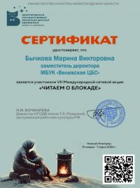 Сотрудники детской библиотеки МБУК «Велижская ЦБС» приняли участие в VII Международной сетевой акции «Читаем о блокаде», посвящённой двум датам: 85-летию со дня начала блокады Ленинграда (День памяти жертв блокады отмечается 8 сентября) и 85-летию установления ледовой трассы «Дорога жизни» (22 ноября).