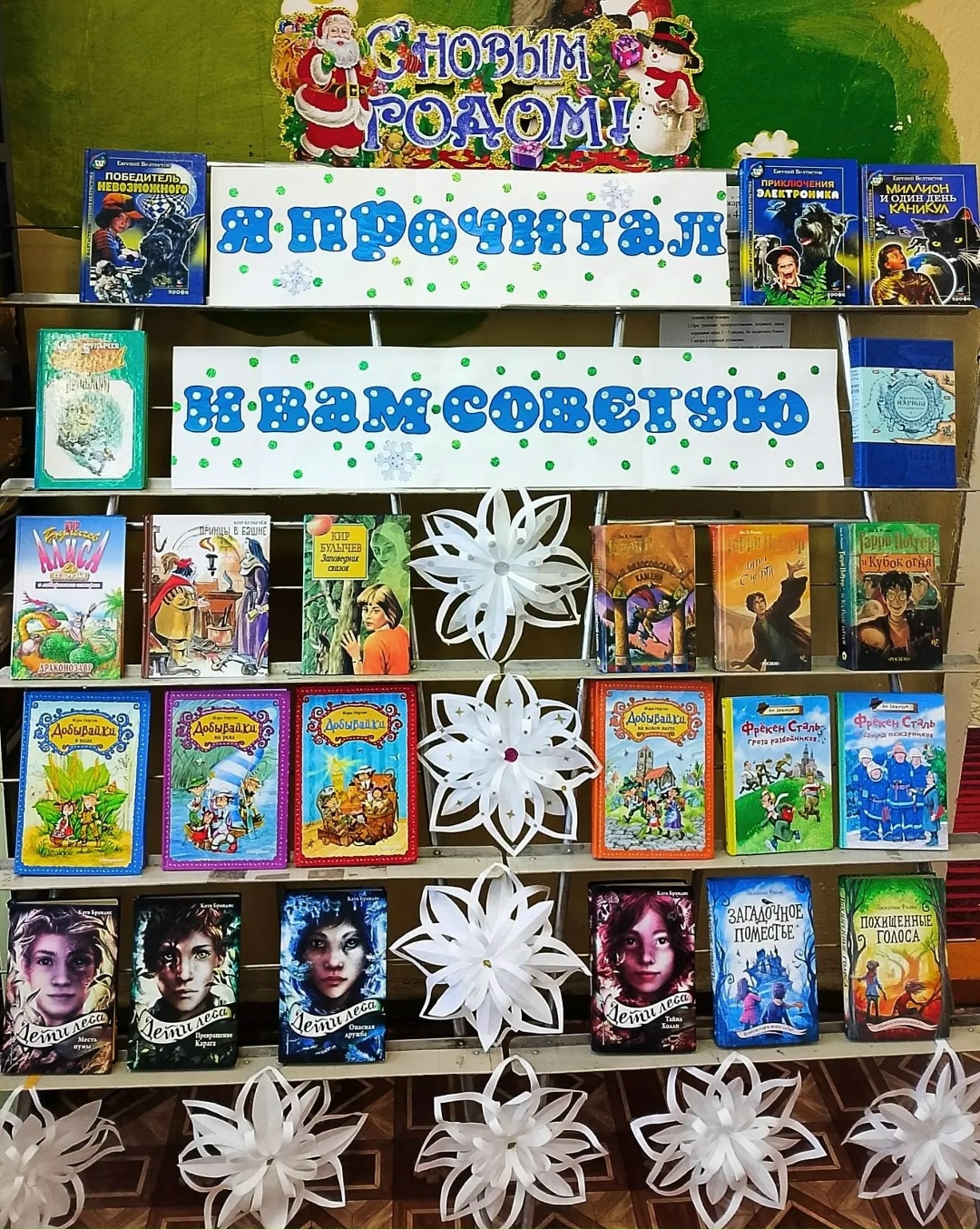 Новогодние праздники всегда проходят ярко и весело. В библиотеке праздничное настроение создают не только шумные праздники, но и, конечно, книжные выставки. Мы приглашаем всех желающих присоединиться к волшебству книжного чтения. Всем, кто захочет провести праздничное время в тишине, - вам в помощь наша книжная выставка – «Я прочитал и вам советую». На выставке представлена часть книг, которые были самыми читаемыми в прошедшем году. Уже знакомые и не знакомые герои ждут вас на страницах книг, представленных на выставке. Любую понравившуюся книгу можно взять домой и тихим зимним вечером, в кругу семьи, почитать вслух.