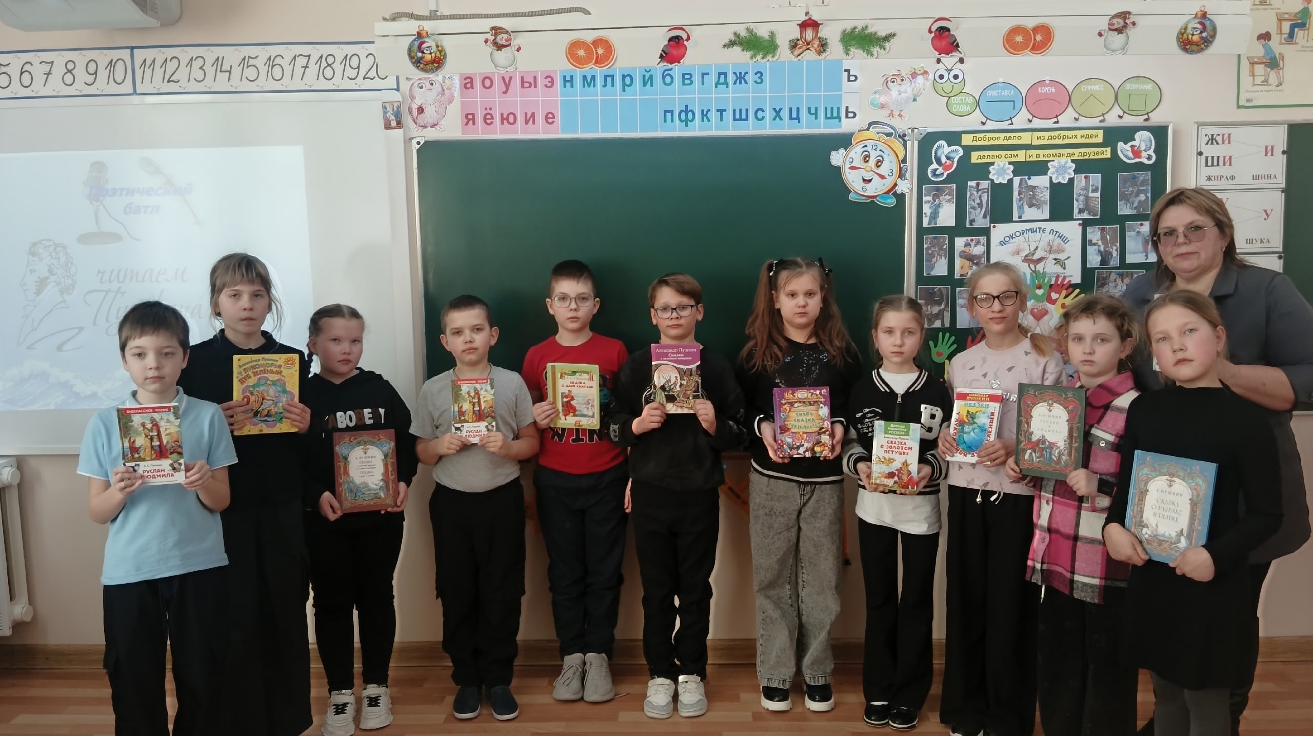 Заранее распределив между собой отрывки из сказок и стихов, школьники по очереди декламировали их.
