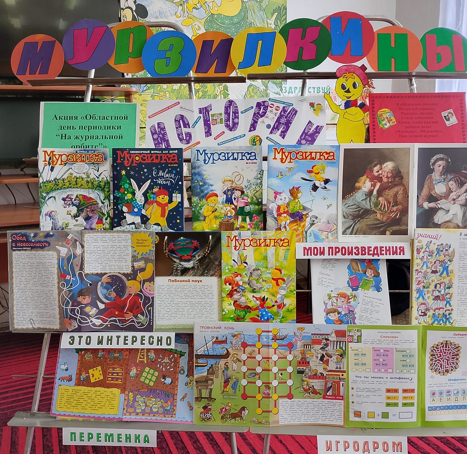 В ходе мероприятия ребята узнали историю создания журнала «Мурзилка». Все вместе читали стихи, раскрашивали картинки, разгадывали кроссворды, придумали комплименты на каждую букву названия журнала. В конце мероприятия все участники получили призы от журнала из раздела «Сделай сам». Для проведения мероприятия была оформлена выставка – досье «Мурзилкины» истории».