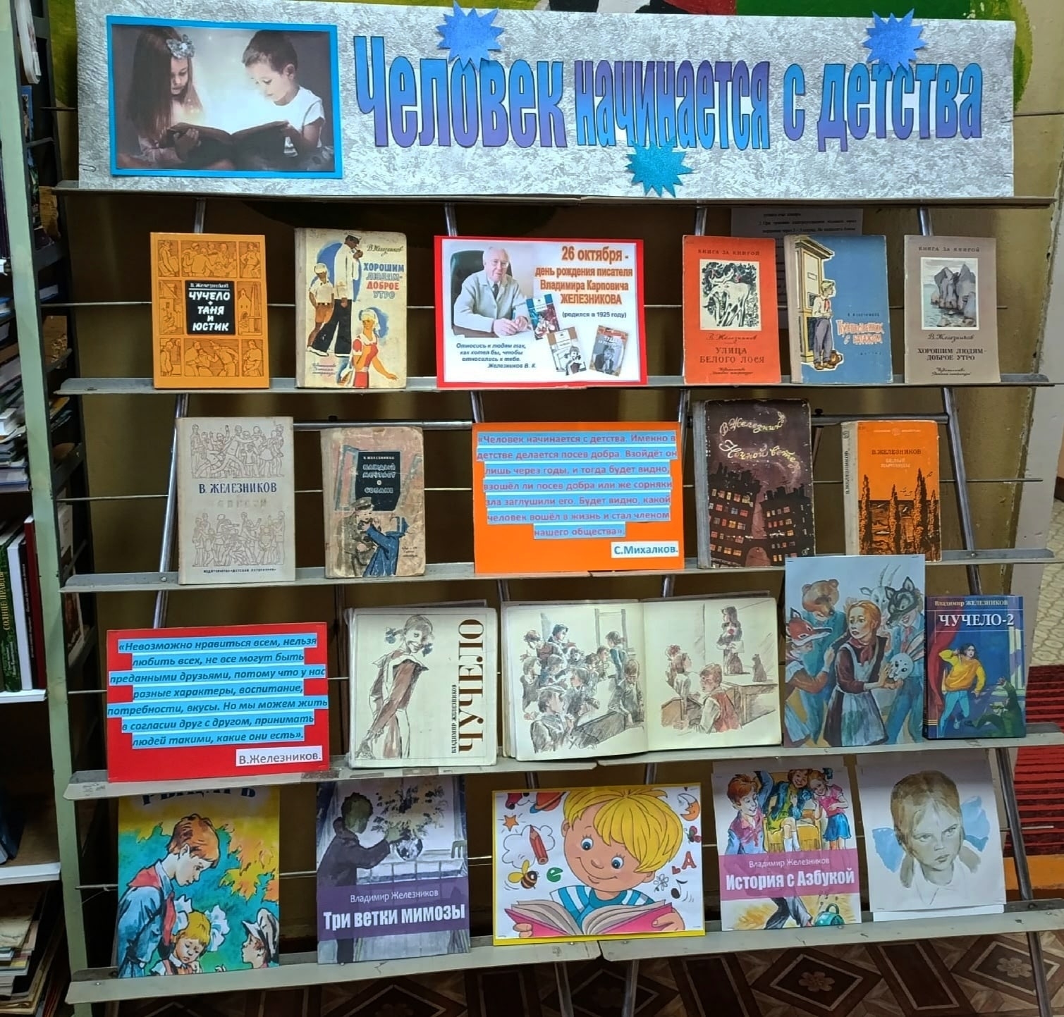 В детской библиотеке оформлена книжная выставка «Человек начинается с детства», приуроченная к знаменательной дате — 100-летию со дня рождения выдающегося российского детского писателя Владимира Карповича Железникова. Его произведения стали настоящими классиками отечественной литературы, вдохновляя поколения юных читателей.