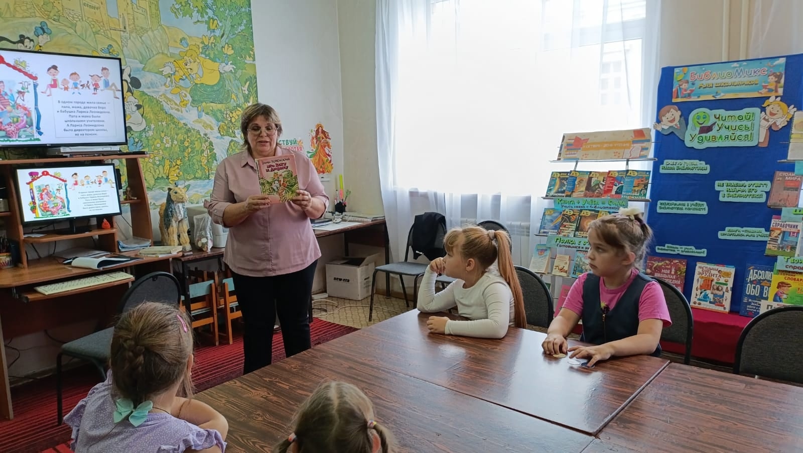 Ребята на весёлом «балагане» под стихотворение Андрея Усачёва отправились в страну «Книгочиталию», по пути сдавали экзамен в «Академии чтения» на тему «Что вы знаете о книге?», погуляли по улицам «Читайграда» и пировали в семейном кафе «Сказка», на рифмобусе ездили в «Рифмоград», а в поселке «Книголюбово» признались в любви к книге.