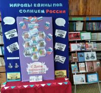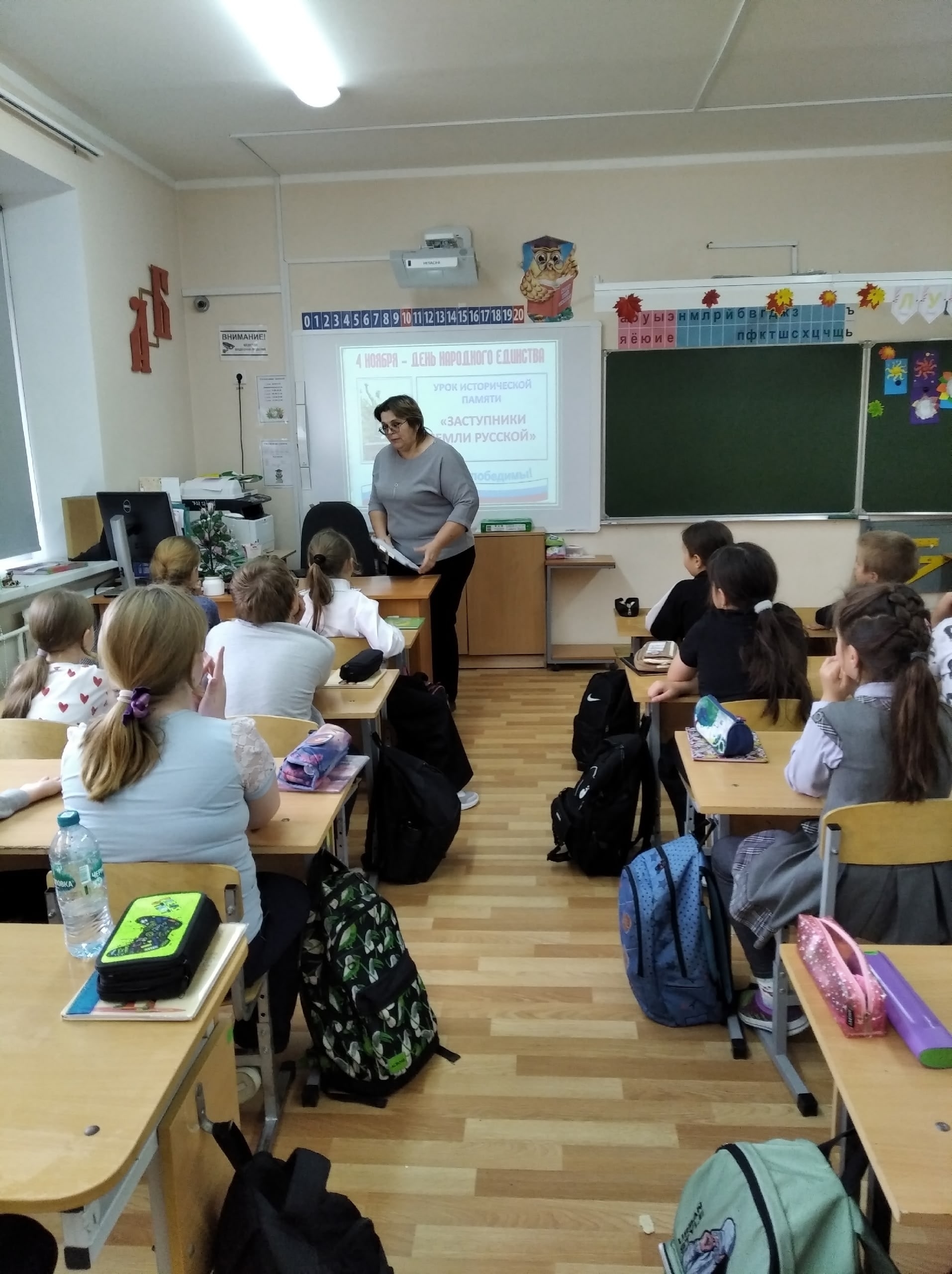Подвигу наших предков, которые под предводительством К.Минина и Д.Пожарского, объединились, спасли и сохранили страну, сделали возможным её будущее возрождение, был посвящён урок исторической памяти «Заступники земли Русской» для учащихся 3 «А» класса МБОУ «Средняя школа №1» (классный руководитель Смирнова Т.В.) .Из слайдовой презентации ребята узнали об истории праздника, об освобождении Москвы от польских интервентов, о роли Минина и Пожарского в объединении страны. В ходе мероприятия ребята смогли понять, что история России учит нас, что порознь, поодиночке не сделать того, что можно сделать вместе. Каждый запомнил, что сильна Россия только тогда, когда она едина. В завершение все вместе посмотрели видео-рассказ об истории Российского государства. Для пользователей детской библиотеки в читальном зале оформлена информационная выставка-плакат «Народы едины под солнцем России».