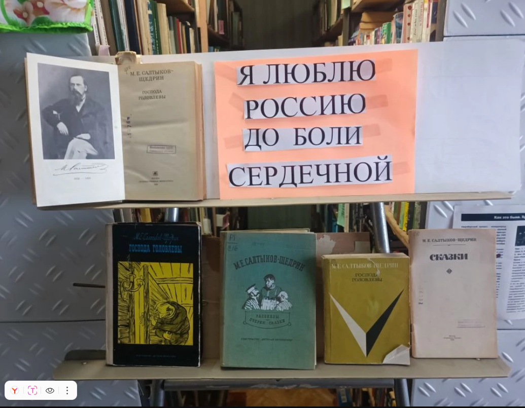 К 200 летию со дня рождения Салтыкова- Щедрина в Плосковской библиотеке оформлена книжная выставка " Я люблю Россию до боли сердечной".