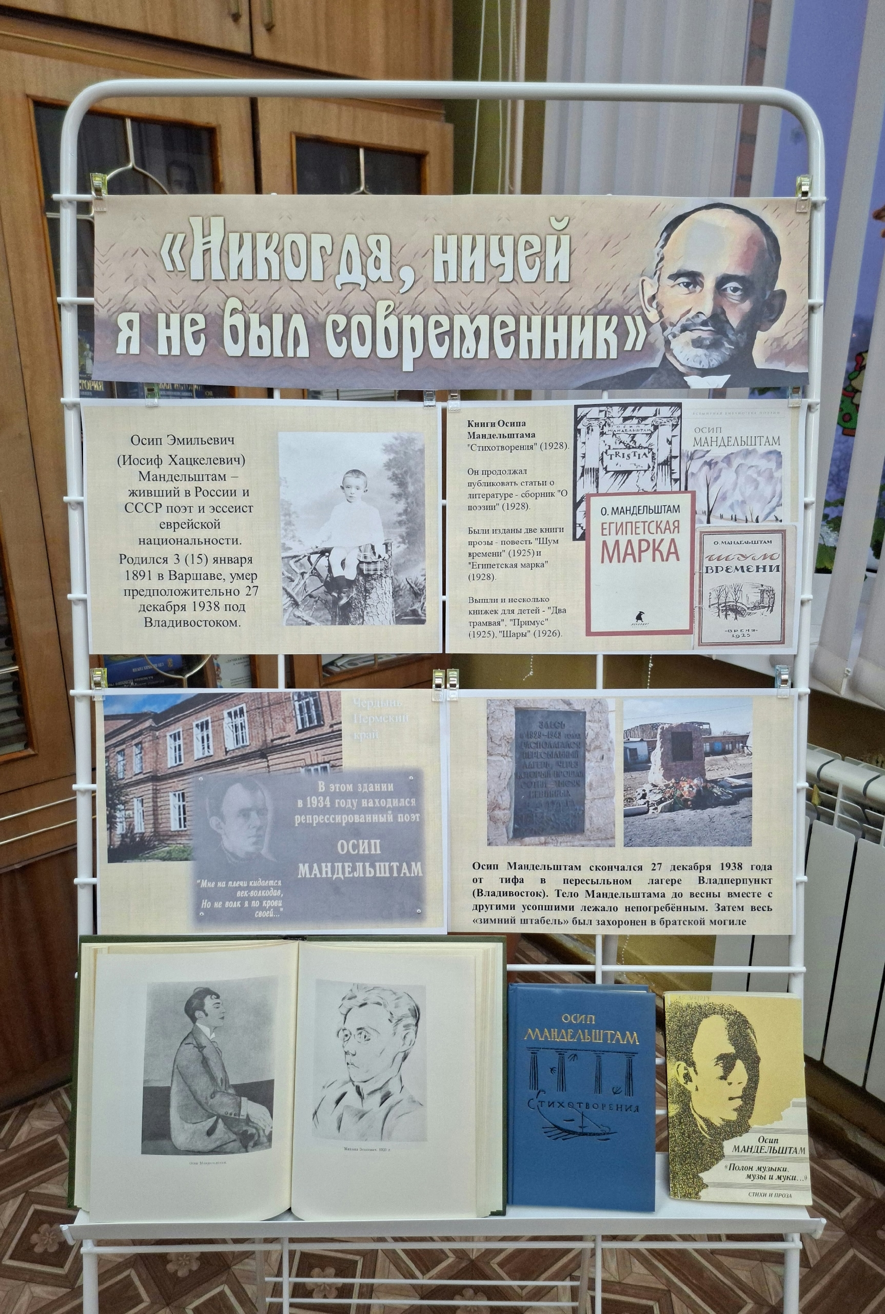 Велижская районная библиотека представляет вашему вниманию книжно-информационную выставку «Никогда, ничей я не был современник», посвященную 135-летию со дня рождения Осипа Эмильевича Мандельштама (1891-1938) — поэта, переводчика, одного из самых известных и талантливых отечественных авторов XX века. На его долю выпало немало испытаний. Поэт пережил три революции, Первую мировую и Гражданскую войны, скитался и голодал, находился под арестом, в ссылке, снова под арестом. Однако «шум времени» не заглушил волшебную музыку его строк, и читатели до сих пор с удовольствием открывают его стихи. Судьба Мандельштама трагична, но и блистательна: «век-волкодав» не пощадил поэта, но его творчество осталось предметом восхищения для тысяч людей в России и за рубежом.